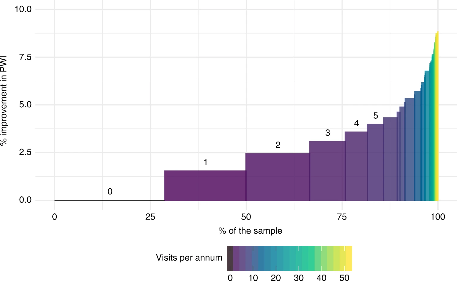 Tako se došlo do zaključka da redovne posete nacionalnim parkovima u proseku uvećavaju PWI za 2,2%, što na koncu doprinosi poboljšanju kvaliteta života velikog broja ljudi i umanjuje zdravstvene troškove za 200 do 250 hiljada australijskih dolara po osobi.
